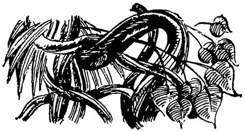 Лесная дорога, по которой мы едем на газике, с обеих сторон обсажена бананами, раскинувшими свои могучие, в серебристых каплях дождя листья. Кое-где на них видны гроздья плодов. Банановая гроздь иногда насчитывает до трехсот плодов и весит около 50 килограммов. Но такие гроздья встречаются редко. Обычно гроздь весит 15–20 килограммов. Бананы – многолетние травы, размножающиеся черенками или вегетативно. После созревания плодов ствол банана срубают (если его не срубить, он отомрет сам). Из корневища вырастает новый. Иногда вырастает несколько стволов. Тогда лишние стволы срезают и сажают рядом.