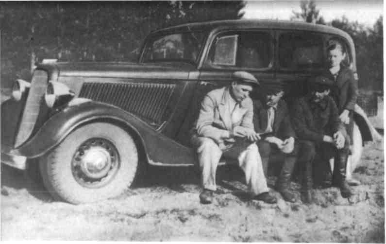 1937 год. Г. Шевченко – помощник секретаря РК, И. Пашкевич – шофер, В. И. Козлов и его дочь Оля.