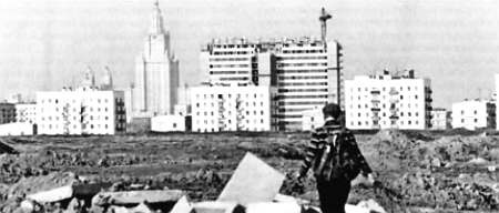 Но есть у Москвы край, где приезжающий сразу же после деревенек, лесов и пашни видит начало чистого высокого города. Поле, фронт строительства – и сразу асфальт, зеркальные витрины, россыпь огней на этажах. Это молодая Москва, Юго-Запад. В этом месте особенно хорошо видно, как растет древний город.