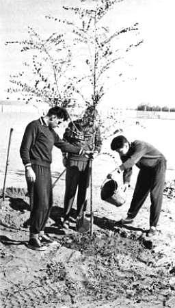 Владимир Комаров (слева). Память о нем будет хранить это деревце на космодроме.