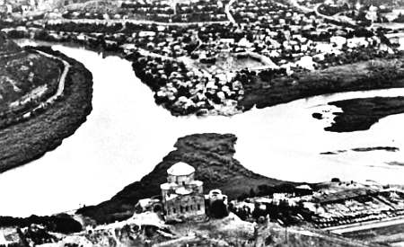 А под горой в этот час сверкают две реки – Кура и Арагви. Кажется, плавленое серебро стекает из двух долин. И там, где воды сливаются, лежит маленький город. Старый храм на горе выглядит юношей перед сединами этого древнейшего на земле поселения. Пять тысяч лет назад «тут уже было воинственное и густое население».