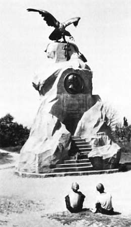 Восемьдесят девять скульпторов предложили свои проекты памятника над могилой у Иссык-Куля. Лучшим оказался простой карандашный рисунок одного из друзей путешественника. По этому рисунки исполнили монумент с орлом, раскинувшим крылья над картой Азии.