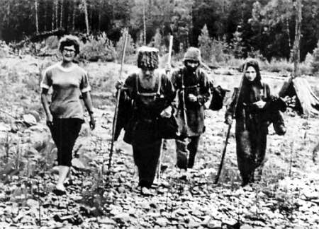 Стали ходить по тропе и геологи. Галина Письменская: «Дружелюбие было искренним, обоюдным. И все же мы не питали надежды, что «отшельники» согласятся посетить наш базовый лагерь, расположенный в пятнадцати километрах вниз по реке. Уж больно часто мы слышали фразу: «Нам это неможно». И каково же было удивление наше, когда у палаток появился однажды целый отряд. Во главе сам старик, и за ним «детвора» – Дмитрий, Наталья, Агафья, Савин. Старик в высокой шапке из камуса кабарги, сыновья – в клобуках, сшитых из мешковины. Одеты все пятеро в мешковину. Босые. В руках посошки. За плечами на лямках – мешки с картошкой и кедровыми орехами, принесенными нам в гостинцы…