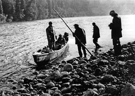 Как стекляшки на солнце, сверкнула в темном провале река, и пошел над ней вертолет вниз, вниз… Опустились на гальку возле поселка геологов. До лыковского жилища, мы знали, отсюда пятнадцать километров вверх по реке и потом в гору. Но нужен был проводник.