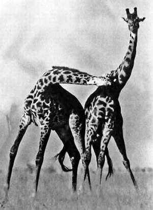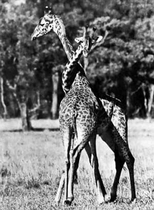 Крепка ли, высока ли у тебя шея? Этот важный вопрос эволюции жирафы решают в брачных турнирах. То, что нам со стороны может показаться дружескими объятиями, на самом деле противоборство – чья шея крепче, кто устойчивей на длинных ногах? Длинная шея позволяет наносить и чувствительные удары.