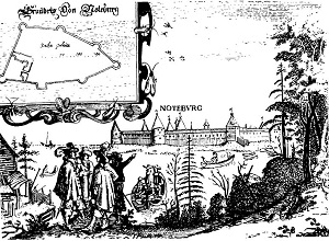 Напряженная борьба у стен Орешка – Нотебурга никогда прежде не была такой упорной, как в 1702 году. Снова, как и в предшествующие времена, здесь решался вопрос – владеть ли России выходом к морю. Имя древней крепости облетело столицы Европы. О ней писали газеты и донесения, публиковались ее изображения. Важнейшее место занимала крепость в планах русского царя. Судьба острова отныне была связана с рождением новой России.