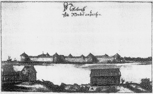 Вид Нотебурга. Гравюра из книги А. Олеария.