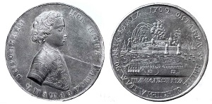 Медаль в память взятия Нотебурга (лицевая и оборотная стороны).