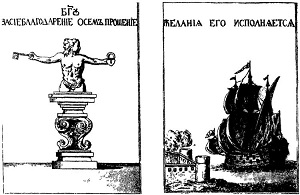 Транспаранты, украшавшие Московские триумфальные ворота по случаю взятия Нотебурга.