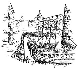 Позже гипотеза о существовании военной гавани в крепостном комплексе Орешка полностью подтвердилась архивными документами. Уверенность в существовании гавани в Орешке московского периода породила не менее интересный вопрос: а как же обходились без нее на острове до этого новгородцы? Не держали же они свой флот в тылу или у левого берега Невы? А ведь Орешек имел большой флот, и мощность его была известна далеко за пределами крепости. Не раз приходилось новгородцам пересекать на ладьях неспокойное Ладожское озеро, чтобы изгнать из русской крепости Корелы шведов, стремившихся овладеть восточной частью Карельского перешейка. Еще в 1164 году был разбит шведский флот, появившийся под стенами Ладоги и состоявший из 55 шнеков (цифра для того времени значительная). Лишь 12 из них удалось тогда вернуться домой. Атака русских ладей, напавших на крупные военные суда Ливонского ордена, также закончилась полной победой нашего флота. Русские ладьи вмещали до 50 вооруженных воинов и обладали большой маневренностью, а так называемая морская ладья имела две-три мачты с парусами, но могла идти и на веслах. На носу и корме ее делались палубы для хранения продуктов, воды и оружия. Судно могло взять на борт даже конницу.