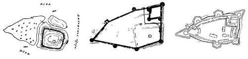 Схематические планы крепости XIV, XVI и XVIII веков.