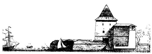Но все же один просчет в обороне Орешка был, хотя и не по вине строителей. Быстрое развитие артиллерии, увеличение веса и пробойной силы ядер сделали особенно уязвимой южную стену. Именно Наугольная и несуществующая ныне Подвальная башни с пряслом между ними больше других подвергались разрушению, так как бомбардировка крепости при всех осадах начиналась с островков, расположенных напротив, у левого берега Невы.