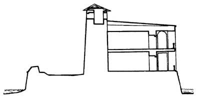 Схематический чертеж казарм в разрезе. Реконструкция.