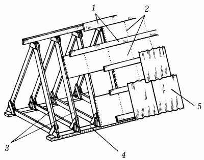 Рис. 23. Элементы крыши: 1 – обрешетка; 2 – настил; 3 – стропила; 4 – мауэрлат; 5 – кровля.
