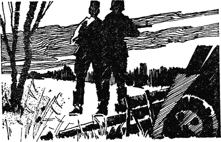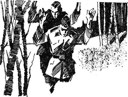Снова Аникин, немного косолапя, идет впереди, за ним я. Неожиданно он останавливается. Куда и девалось мечтательное, задумчивое выражение его лица! Оно становится настороженным и суровым.