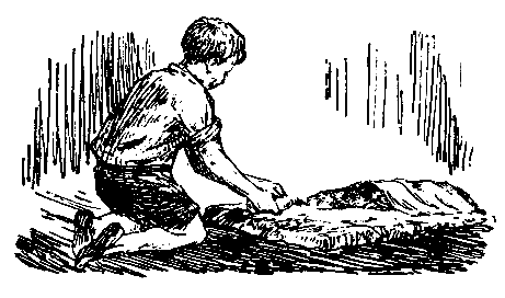 Толя взялся ухаживать за ней сам. В углу около своей постели приготовил он для Наи тёплое, удобное гнёздышко, напоил её молоком и уложил спать. Уснула Мая почти сразу, па боку, а лапку положила под головку, совсем как человек. Спала она так почти всегда или ещё ложилась на спинку и складывала лапки на животе. Тогда Толя покрывал её одеяльцем, и выходило очень забавно.