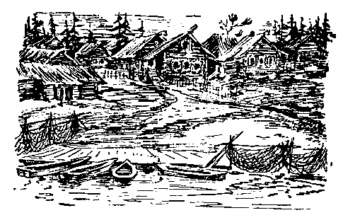 Небольшой рыболовецкий колхоз раскинулся так близко у берега Белого моря, что во время прилива вода подбегает к самым домам, а когда уходит, то за нею по камням тянутся темно-зелёные скользкие водоросли.