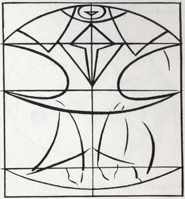 Рассматривая «Троицу» под таким углом зрения, мы обнаружим, что Дюрер привнес в композицию картины всякого рода математические элементы. Конечно, прежде всего бросается в глаза симметрия обеих ее половин. Оговоримся сразу же, что это относится только к построению картины, то есть к членению холста на поля, но отнюдь не к художественному исполнению. Так, на картине строго разделены светская толпа и духовенство, а среди святых – даже мужчины и женщины. Если приглядеться к земле, изображенной в самом низу, то видно, что ее поверхность поднимается в обе стороны от центра по эллиптической кривой. Ее строго повторяет линия, образуемая головами человеческих фигур. Только император, папа и голова женщины в левой части картины возвышаются над этой линией, которая подходит к боковым краям картины посредине полотна. Сверху Дюрер замкнул картину, поставив ножку циркуля в облако у основания креста и прочертив дугу.