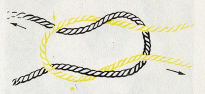 Морской узел «плоский штык» дает нам еще один прекрасный пример симметрии. Здесь необходимо рассматривать не только симметрию формы, но и симметрию нагрузки. Наш перекрестный узел можно завязать (правильно!) таким образом, что вначале связываются между собой концы каната, которые впоследствии должны испытывать нагрузку. Но можно завязать его и так, что нагруженный конец будет соединен со свободным, ненагруженным («самораспускающийся» узел). В.завязанном виде оба узла практически неразличимы. Однако если нагрузить неверно завязанный узел, то он не станет держать. Как говорят моряки, узел «разъедется».