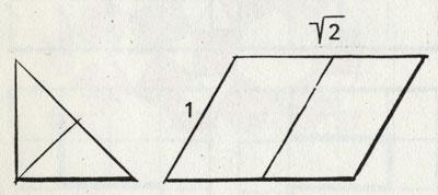 Вспомним, что прямоугольник является лишь частным случаем параллелограмма и что параллелограмм с соотношением сторон 1:√ 2, равно как и прямоугольный равнобедренный треугольник, можно разделить на две уменьшенные копии.