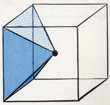 Тетраэдр нам знаком из повседневной жизни. В пакетах-тетраэдрах мы покупаем молочные продукты. Некоторое время назад дискутировался вопрос, почему для этих целей использует-се именно тетраэдр, а не гексаэдр, то есть куб. Ведь куб имеет наименьшую (после шара) поверхность по отношению к объему. Поэтому при такой упаковке для того же объема молока понадобилось бы меньше упаковочного материала, чем при упаковке в тетраэдры. Однако если мы посмотрим на развертки обоих тел, то увидим, что тетраэдры можно складывать из непрерывной движущейся ленты. А вот кубы из простой ленты не получатся. Два квадратика всегда будут торчать, так что обрезков всегда будет оставаться гораздо больше, чем при склеивании пакетов-тетраэдров.