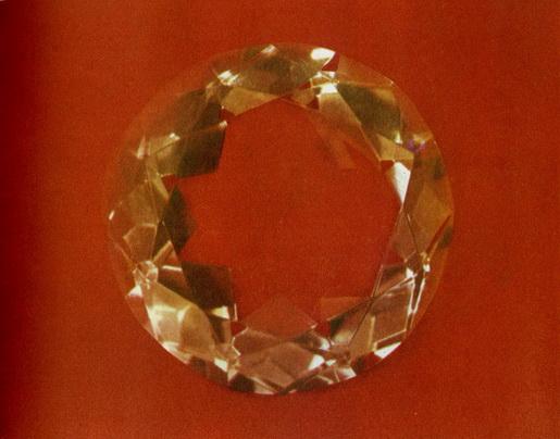 Хороший бриллиант имеет 56 граней, из них 32 на верхней части и 24 – на нижней. Благодаря большому числу граней достигается многократное преломление света. Не все бриллианты бесцветны. Бывают окрашенные камни. Известен канареечно-желтый бриллиант Тиффани. Его вес – 128 карат (В начале 1981 г. в Якутии был найден желтый ювелирный алмаз весом 170 карат. Он был назван в честь XXVI съезда КПСС. – Прим. перев). Римский писатель и натуралист Плиний писал: «В каждом драгоценном камне как в капле воды отражено все величие природы».
