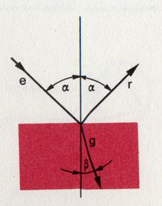 При больших углах падения α для того, чтобы произошло преломление, должно было бы соблюдаться условие sinβ>1 ; поскольку это невозможно, весь свет отражается и никакая его часть не испытывает преломления (полное отражение).