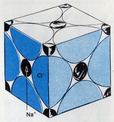 Сравните симметрию решетки кристалла и рентгенограммы. Обратите внимание на постоянное чередование ионов Nasup+/sup и Сlsup-/sup в структуре кристалла. Решетка из Nasup+/sup -ионов вставлена в решетку из Сlsup-/sup -ионов