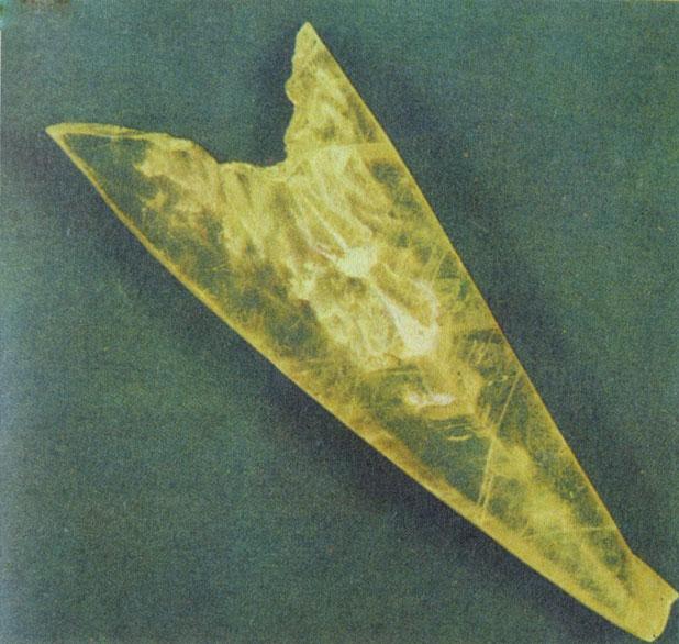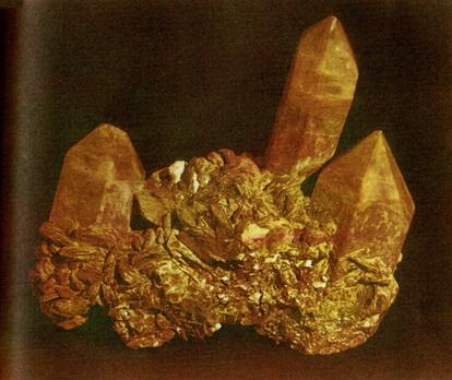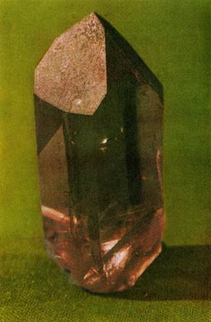 По одному-единственному кристаллу кварца легко догадаться, что он может встречаться в двух формах. Стоит посмотреть на этот кристалл в зеркале, как его передняя треугольная грань окажется в положении, соответствующем другому направлению вращения. На фотографии изображен левый кварц из Гарца
