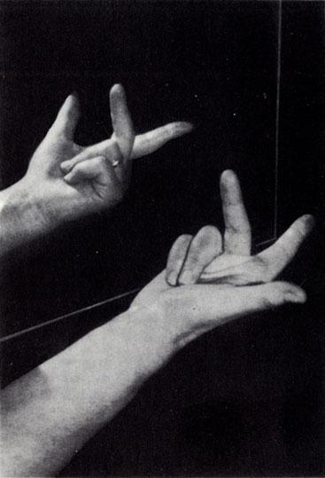 Ну и какое же направление роста кристаллов кварца мы назовем правым (то есть приводящим к правым формам)? Конечно, такое определение будет носить сугубо произвольный характер. Обратимся к математике, где все строго подчинено логике. Там различие между координатными системами с правой и левой ориентировкой основывается на «правиле трех пальцев». Математик поднимает большой палец к небу, вытягивает указательный и сгибает средний палец. Если он использует для этого левую руку и направления координатных осей соответствуют положениям пальцев, то вся система координат является правосторонней, если правую или (что то же самое) зеркальное отражение левой, то система координат будет левосторонней. Мы видим, что и здесь левое и правое зависит от определения, которое в свою очередь непосредственно исходит из строения человеческого тела.