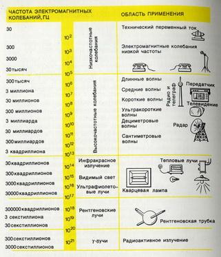Частоты электромагнитных колебаниц и область применения