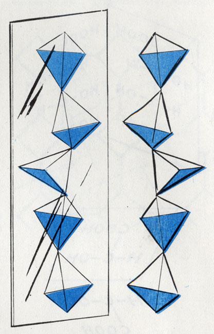 Некоторые силикаты (минералы кремния) построены из цепочек [8Ю2]-тетраэдров, у которых возможно зеркальное отражение. Вот почему кристаллы кварца появляются в виде правой и левой форм