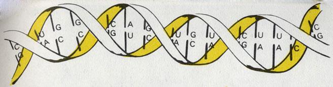 Мы опять, как видите, вернулись к модели генной спирали построенной Уотсоном и Криком. При оплодотворении женского яйца наследственность может передаваться только в материальной форме. При этом однозначно должно указываться какие именно признаки наследуются. Здесь сразу же намечаются два возможных пути осуществления этой задачи.