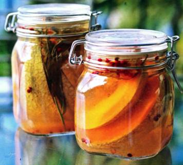 • Разложить дыню по банкам, добавить розовый перец и эстрагон. Залить маринадом, покрыв полностью дыню.