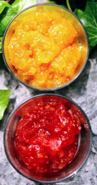 • Измельчить плоды с сахаром и уксусом в блендере до желаемой консистенции (для соусов желательно в пюре).