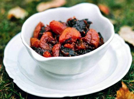 К жареной печени, фуа-гра, терринам из мяса и дичи, уткам и прочему «осеннему» – лучше не придумать. Да и просто на гренках… А готовится как-то неприлично просто. Внимательно читайте пропорции, 3 кг сухофруктов – это очень много. Не думаю, что вам столько понадобится сразу, – уменьшайте и делите количество сахара и специй. Если у вас сухофрукты суховаты (простите за тавтологию) или давно хранятся, их надо замочить предварительно в теплой воде, пусть станут мягче. Затем их надо хорошо отжать. Для аромата можно добавить в самом конце варки пару ложек какого-нибудь яркого меда. Или влить мускат, коньяк-арманьяк, темный ром, апельсиновый или миндальный ликер, фламбировать или просто дать выпариться алкоголю. Фантазируйте.