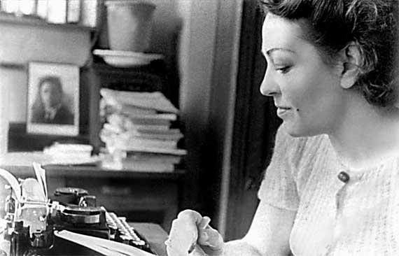 За пишущей машинкой.