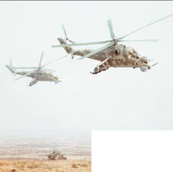 Вертолеты Ми-24 участвовали в боевых операциях, сопровождали колонны и вели воздушную разведку. Высокую эффективность показали атаки вертолетов с пикированием, осуществлявшимся вертолетами с высот 3000-2500 м под углами от 10 до 25° на скоростях 140-150 км/ч. Из пике машины выходили на скоростях 200-250 км/ч.