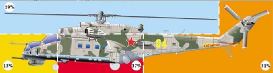 Рис. 3. Распределение боевых повреждений вертолетов Ми-24