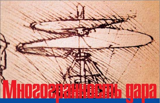 Многие говорят, что Леонардо является изобретателем первого вертолета, и в этом мнении есть как зерно истины, так и частица заблуждения. Истина состоит в том, что это действительно первое описание конструкции, представляющей собой аппарат вертикального взлета для летания, а не «модель» летающего человека. И никакие китайские «вертушки» этого права первородства у леопардовой конструкции не отнимут. Наверно, можно сказать, что Леонардо как бы разделил (или еще не соединил) два процесса – вертикальный взлет, для которого и придумал свой воздушный винт, и посадку, которая осуществляется с помощью им же придуманного парашюта. Однако этот винт, конечно же, не является вертолетом. Скорее, это его прообраз. Как и во многих других случаях, Леонардо ограничивается рисунком, наброском, намеком на возможность построить аппарат. Но даже если построить его по описанию Мастера, то в воздух он вряд ли поднимется. И тем не менее, именно этот рисунок вдохновлял и продолжает вдохновлять многих пришедших в вертолетостроение. Интересно, что по популярности и тиражируемости с этим наброском великого итальянца не может сравниться никакой другой его рисунок. Майки, календари, постеры, плакаты, открытки – где только не изображен знаменитый леонардов винт, этот прообраз вертолета! В этом смысле можно сказать, что вертолетостроение получило в лице Леонардо да Винчи великого художника– рекламиста. Стиль его прост, изящен, демократичен и прозрачен, а сила воздействия на умы и сердца людей просто потрясающая. Одним словом, Гений!