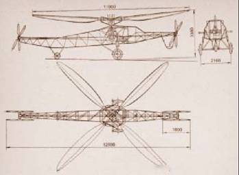 Общий вид вертолета ЦАГИ 1-ЭА (сборочный чертеж)
