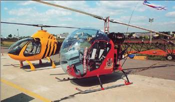Достаточно скромно были представлены на этот раз иностранные вертолеты – только одна московская фирма выставила три легких одно– и двухместных «иностранца», намереваясь катать на них всех желающих (за деньги, естественно).