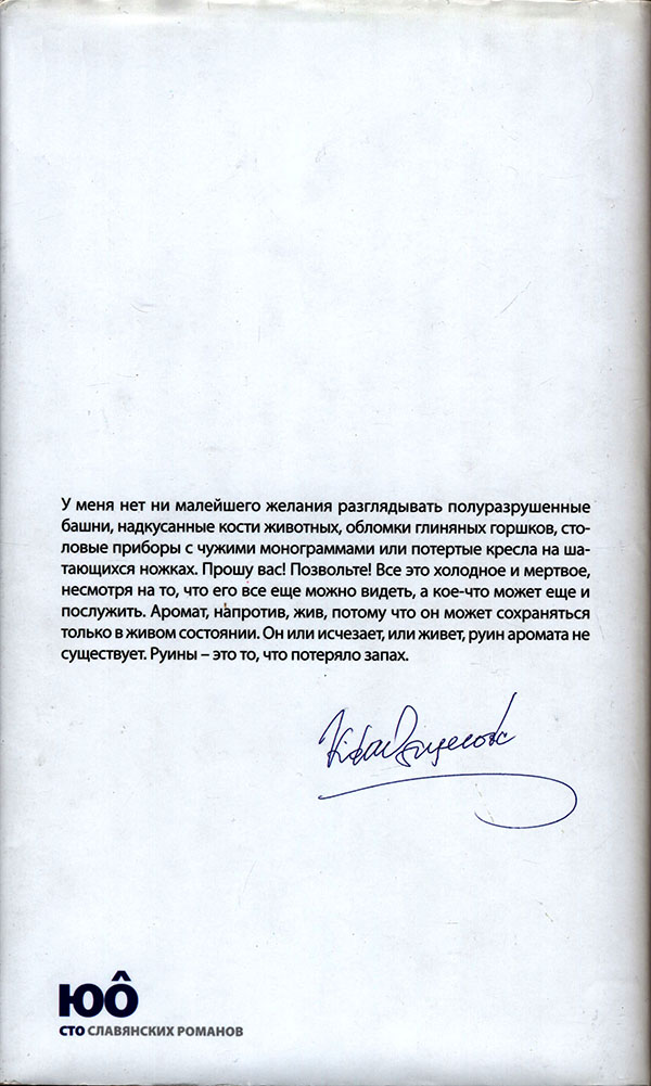 Никто не хотел первым притрагиваться к флакону семнадцатого века. Пусть это сделает кто-нибудь с более удачливой рукой, переглядывались они. Чувствовали себя немного виновато. Ценнер сказал, что слишком устал, чтобы быть первым. Хлубник молчал, как рыба. Ольга тихонько промолвила: Давайте я. Пожилая госпожа Эмилия, которая за ночь постарела и выглядела так, будто стоит на краю могилы, сидела в том самом кресле, в котором она последний раз видела своего сына. Ее отчаянный взгляд лучше всего говорил, что с наибольшим удовольствием она бы и сама опустила голову на раскрытую книгу и уснула, как он. Она как-то рассеянно улыбнулась и сказала, не отводя взгляд: понюхай, Ольгица. Ольга встала перед витриной, легонько отвернула крепко закрытую пробку, дотронулась ноздрей до края горлышка, а затем быстро закрыла рукой отверстие в бутылочке.