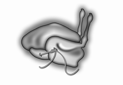 Заправка клювом. Так заправляют болотную дичь. Для этого тупой стороной ножа раздробляют кости ножек в голенях, переплетают их и прижимают к грудной части, головку с шейкой прикладывают к тушке с правой стороны, делают иглой прокол в окорочок, клюв пропускают в прокол, скрепляя перевитые ножки.