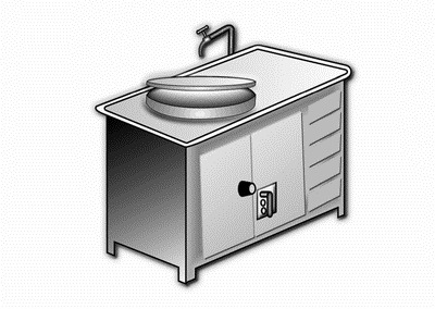 В небольших столовых и ресторанах, где нет возможности для разделения труда и не применяется специализированное оборудование, рабочее место повара – это стол и плита, расположенные на расстоянии не менее 1,5 м друг от друга. Рабочее место повара должно быть оборудовано холодильным шкафом для полуфабрикатов и стеллажом. Необходимо также иметь циферблатные и почтовые весы, разделочные доски, комплекты ножей и другие инструменты, судки со специями и приправами.