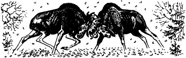 Рыси лежали в густом кустарнике и, приподняв головы, наблюдали. Неподалеку на склоне холма стоял этот крупный лось. Они хорошо видели через сплетения ветвей, как он нетерпеливо сильными ударами передних ног рыл землю. Его тяжелая голова была низко опущена, большие глаза налились кровью, темно-рыжая шерсть на холке встала дыбом. Он ждал соперника. И тот пришел. Глухо, басисто и протяжно крикнул он что-то злое и, ломая кусты, с шумом выскочил на тропу навстречу Угу. Когда они ударились рогами, казалось, хвойные лапы, нависающие над тропой, вспыхнут от искр. Треск от этого удара – рогами в рога – был такой сухой и пронзительный, словно неожиданная молния поразила соседнюю сосну. Противник Уга был моложе и почти такой же крупный. Оба они изогнулись и напряглись. Каждый хотел сначала сдвинуть, а потом смести соперника с этой узкой тропы, по которой победно должен пройти только один. Выпуклые мускулы быков на груди, на спине и на бедрах вздулись и набрякли. Копыта их начали уходить в землю.