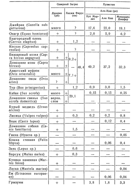 Фауна раннего (рн) и позднего (пн) неолита Загроса