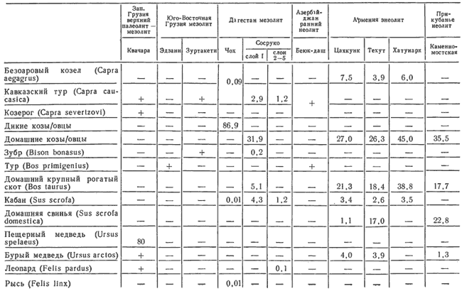 Фауна конца плейстоцена, раннего и среднего голоцена Кавказа