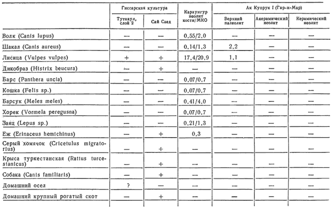 Фауна из некоторых поселений каменного века Средней Азии и Афганистана