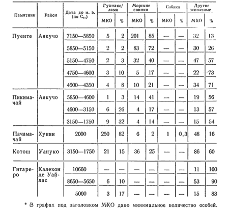 Фауна из археологических памятников горных Андов
